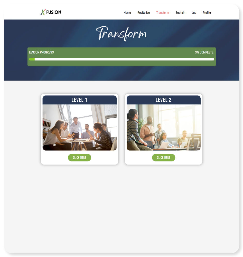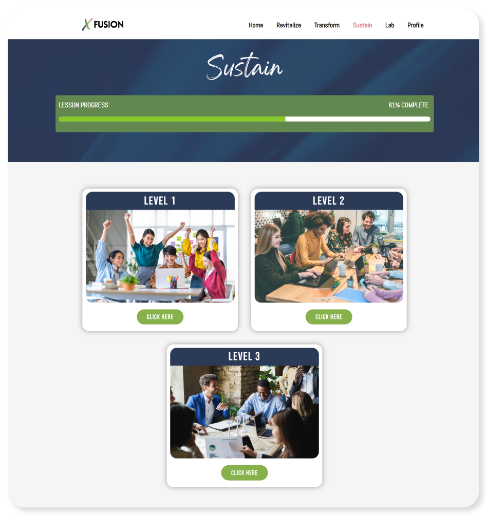FUSION empowers employees to take charge of their own growth through a blend of resources, tools, and intentionally sequenced activities. By combining the depth of foundational macro-learning with the practical reinforcement of behavior-changing micro-learning, the platform provides structured support that helps individuals apply what they learn in real time and track their progress along the way.