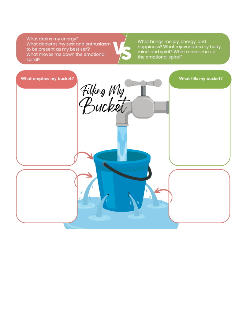 • Is there anything stressing you out or really “emptying your bucket” right now?