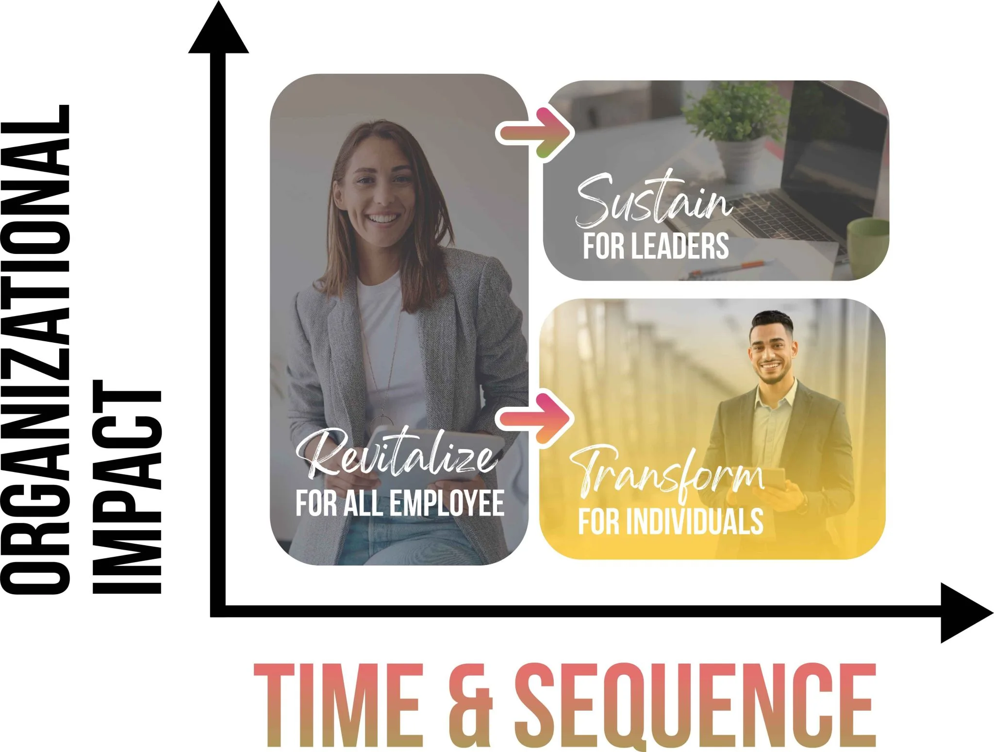 TRANSFORM is a digital, subscription-based program building off of REVITALIZE. It forms the habits individual contributors will need for continual performance improvement. Individually directed interactions coupled with optional growth challenges increase the usage of the performance rubric. This creates employees who level up throughout life and work.